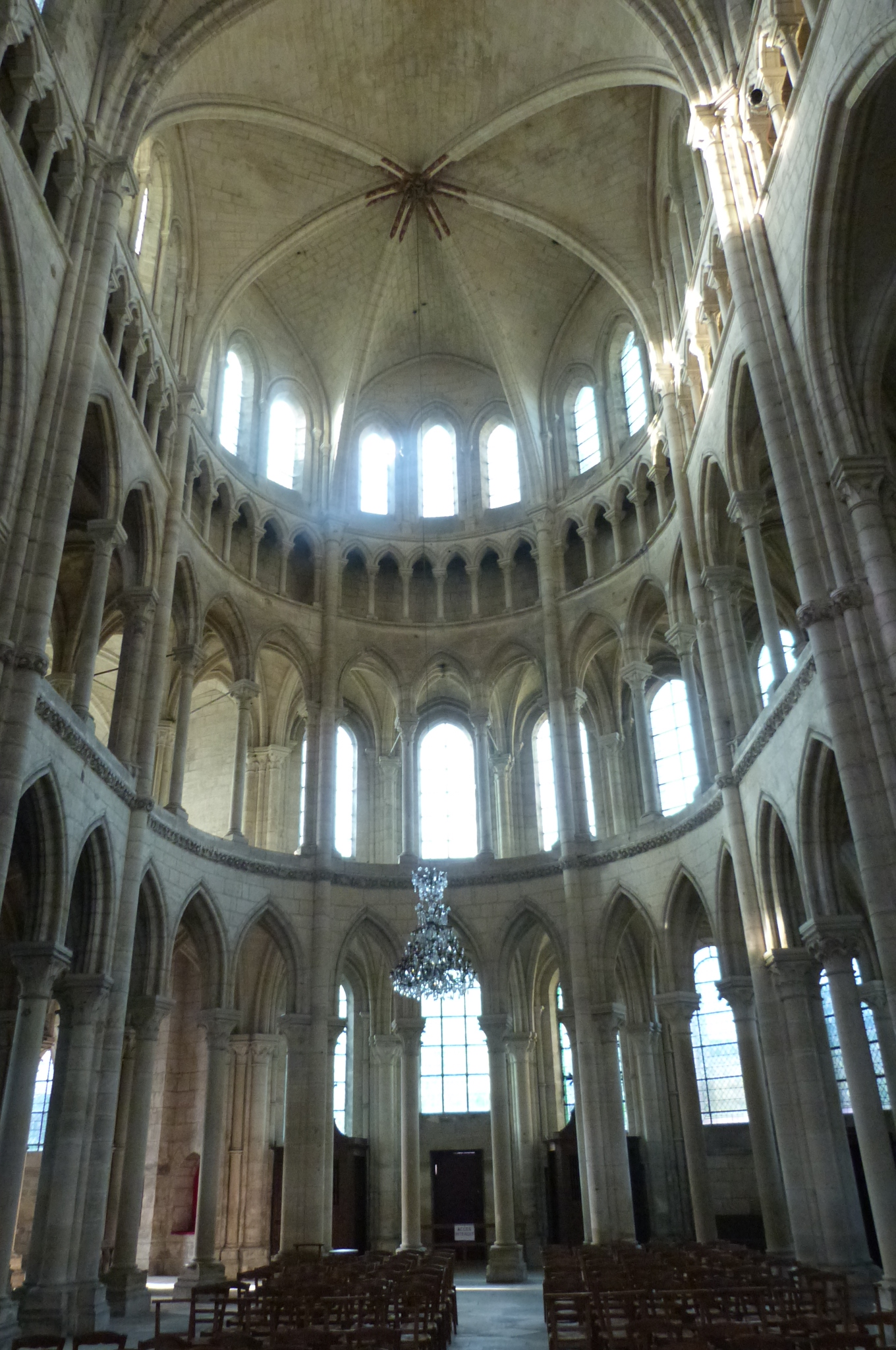 Rheims Cathedral is largely the result of one campaign, unlike most English Cathedrals. Much more of a puzzle along the lines I am used to back home is the Abbey of Saint Remi not far south of the centre. This is a Romanesque church remodelled into pointed, with a pure Early Gothic twelfth-century chevet of the kind of Saint Germain-des-Pres and St. Martin des Champs in Paris. Opened by an elderly gentleman with a cane at ten to seven, I spent a most rewarding hour or so investigating its pier forms to see how they came to a solution for renovating this church.