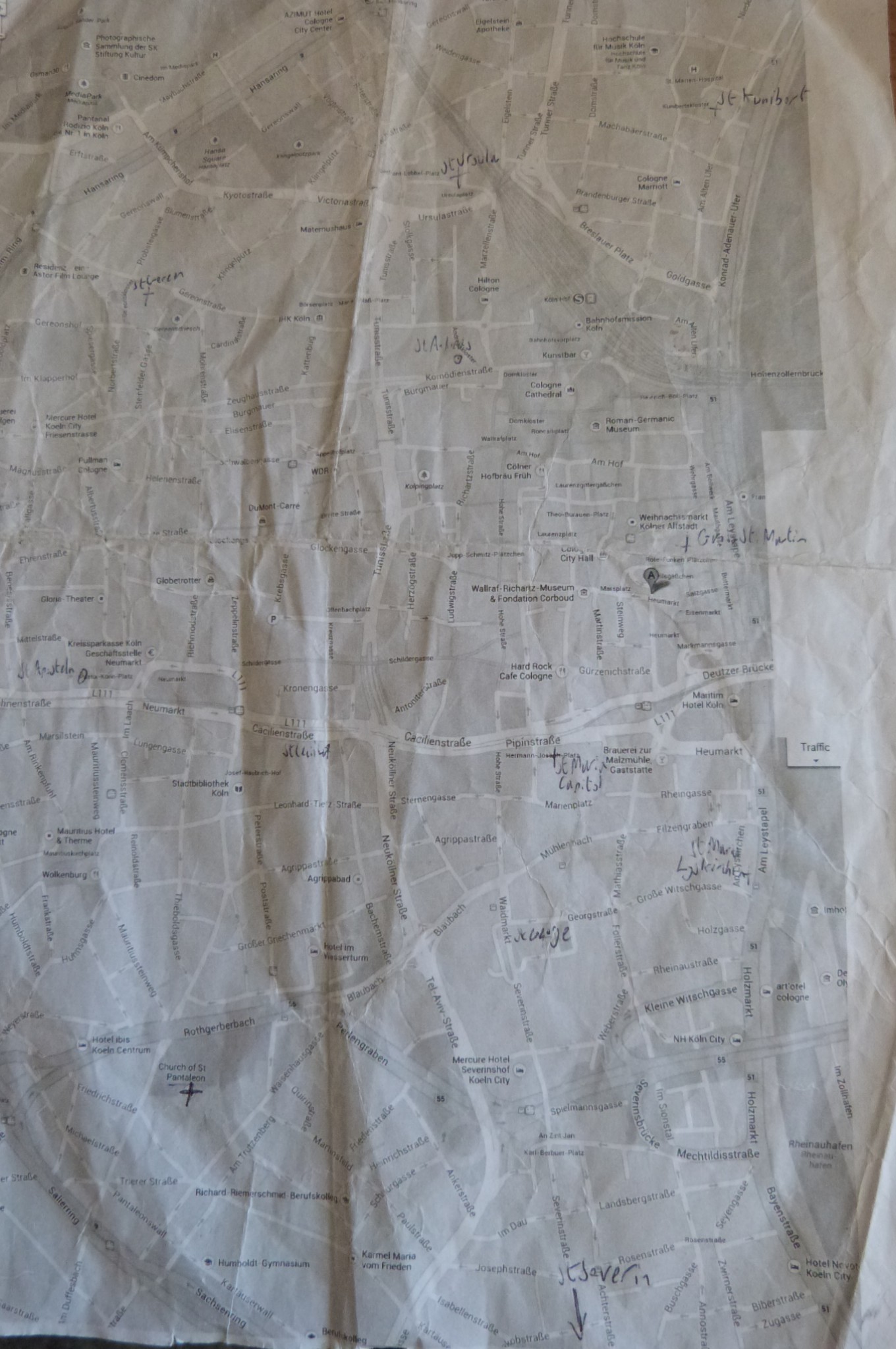 This is another enormous church with a tower with four flanking turrets that dominates the skyline after the Dom (sadly all rebuilt as the crossing caved in from a direct hit). Unlike St. Kunibert the fabric has much more of the patina of time about it, and there’s certainly a lot less in the way of altarpieces and statues. But what was most memorable about this church is the reason it’s open so late: it is staffed by a Monastic order and has a Mass every day. The nuns’ plainchant was captivating and there was a wonderful serenity to the whole thing. As nearly every service I’ve seen in a building like this, it was not able to approach the scale of the ancient church, and merely taking place in it. However in its modest quality it felt like watching a very distant shadow of the medieval liturgy, like the underdrawing of a faded fresco.