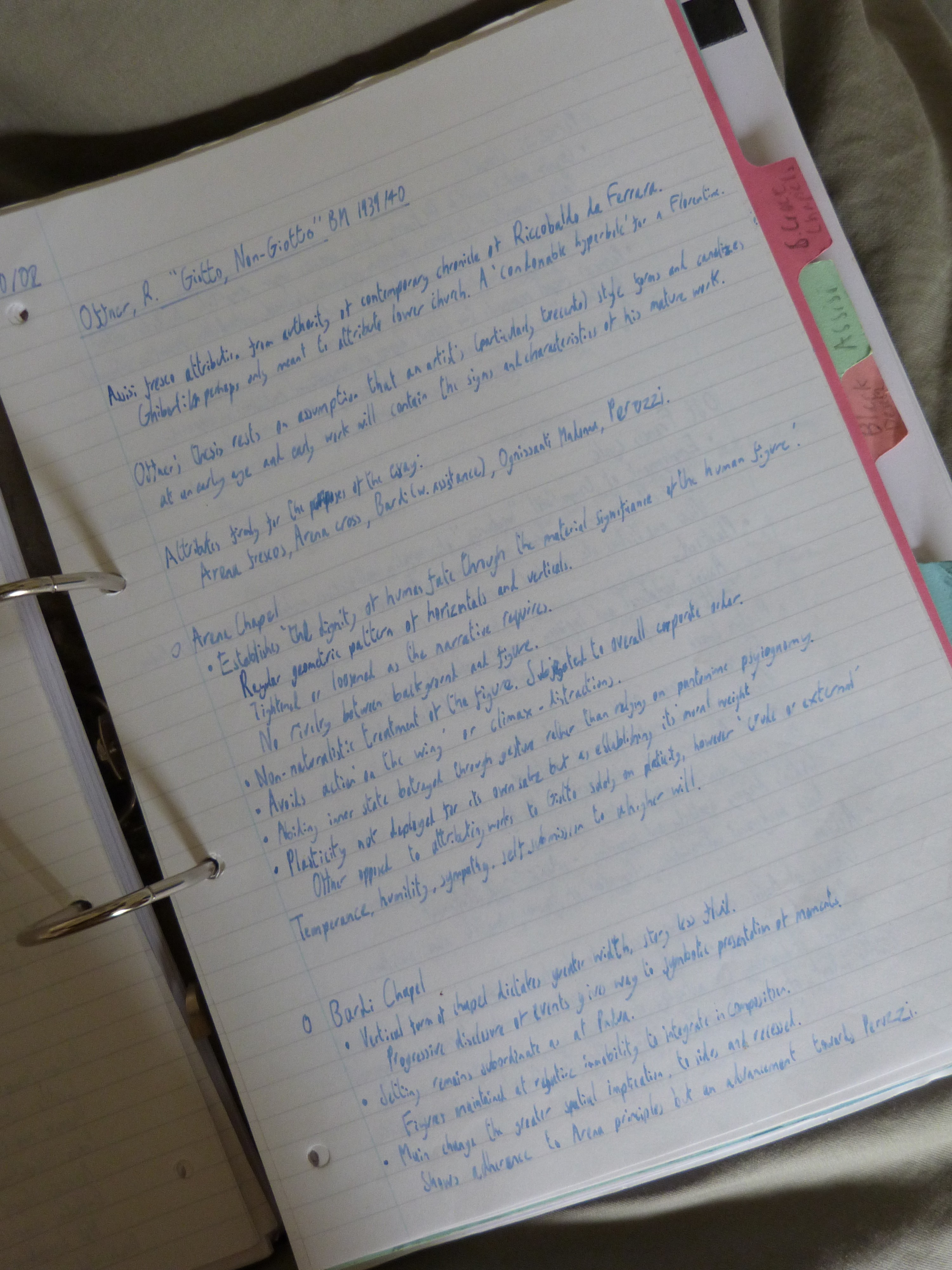 The notes for my BA at the University of Manchester and my MA at The Courtauld Institute fill three whole lever-arch binders (the majority of which are for my third-year BA, not including the dissertation). Ten years ago, if you brought a laptop to a lecture, you’d stick out like you’d brought your own sandwiches to a lunch meeting at a mediocre café. Everyone would look down on you for it, even if deep down they thought it was a rather good idea. But nevertheless, I was never the one to make this faux-pas, resulting in reams of A4 paper with fountain-pen notes. I developed a system of organising notes – for both set texts and lectures – into sections, using bullet points or indenting as the argument deepened, and returning to the margin when a new idea was introduced.