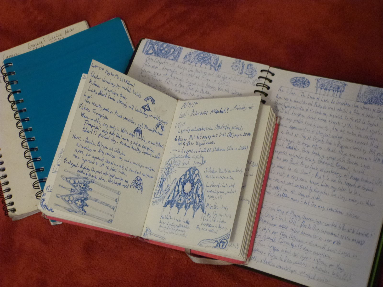 Writing however, continued to be useful to help understand things rather than simply to record: most of all lectures. My golden age of the “classic type” of note-taking survived into the extensive notes I take during academic talks, not necessarily to remember what they said, but to have some sort of exercise in front of me to understand the facets of their argument. For much of the three years of my PhD, these were done in notebooks. Increasingly, my scrawl became ever-more spidery, and if anyone was to research my archive if I suddenly die in a bizarre gardening accident (the latter far more likely than the former) they’ll need to train themselves in palaeography at a level usually reserved for Babylonian cuneiform. Marginal doodles of Gothic tracery reached their apex during the middle of year three, suggesting I may have being having some sort of episode by then.