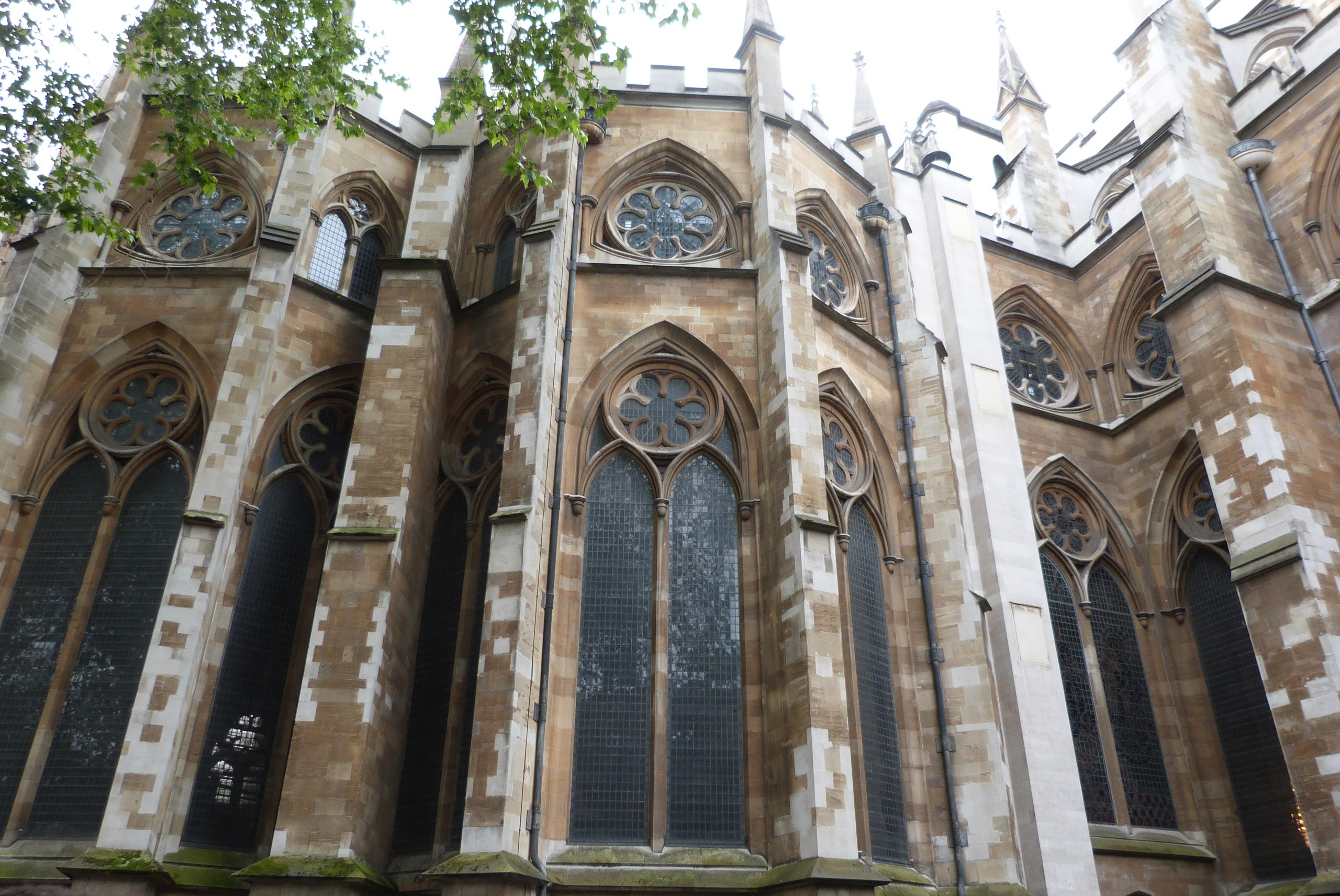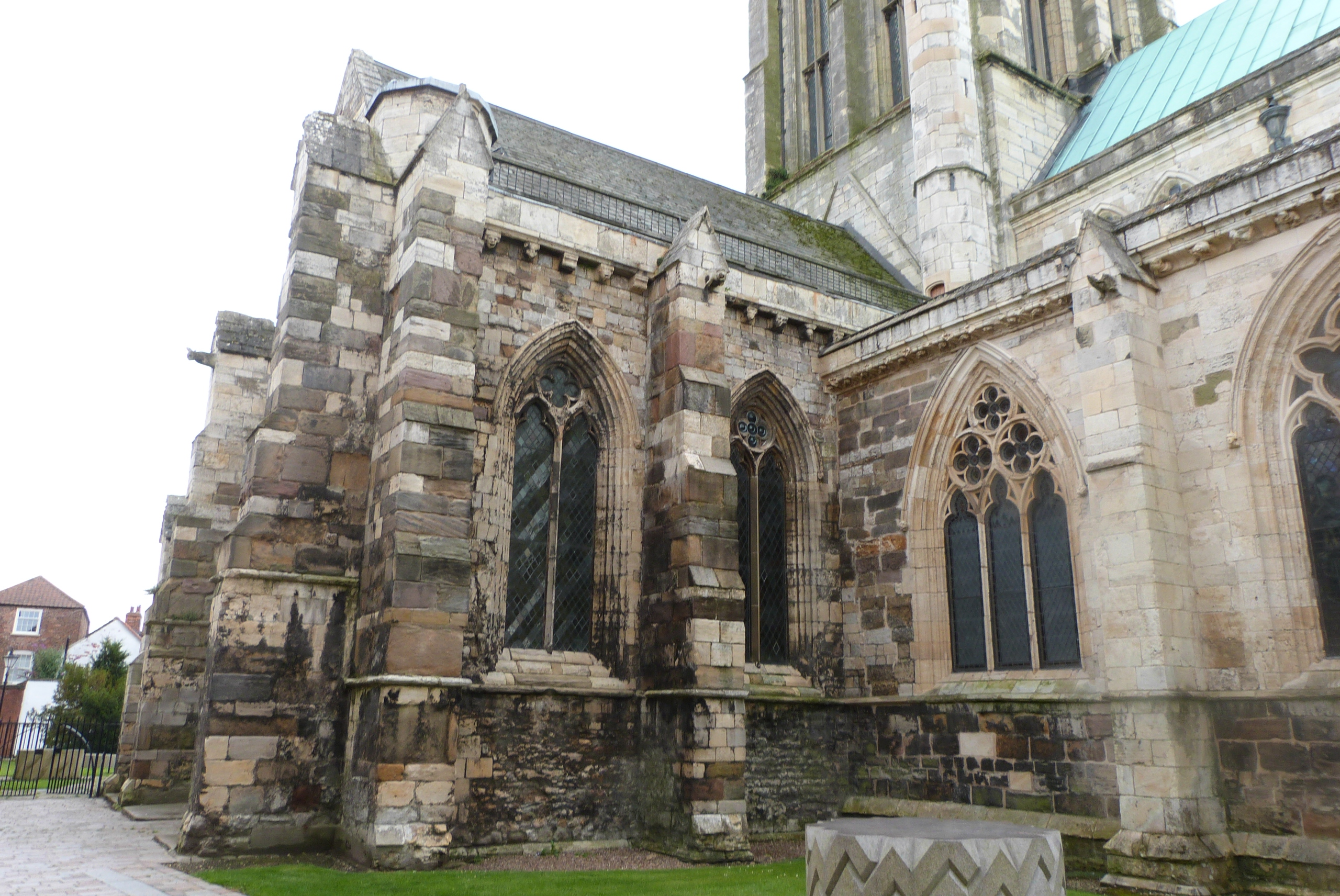 Westminster Abbey, north chapels of ambulatory. Note the big buttress between them on the left.