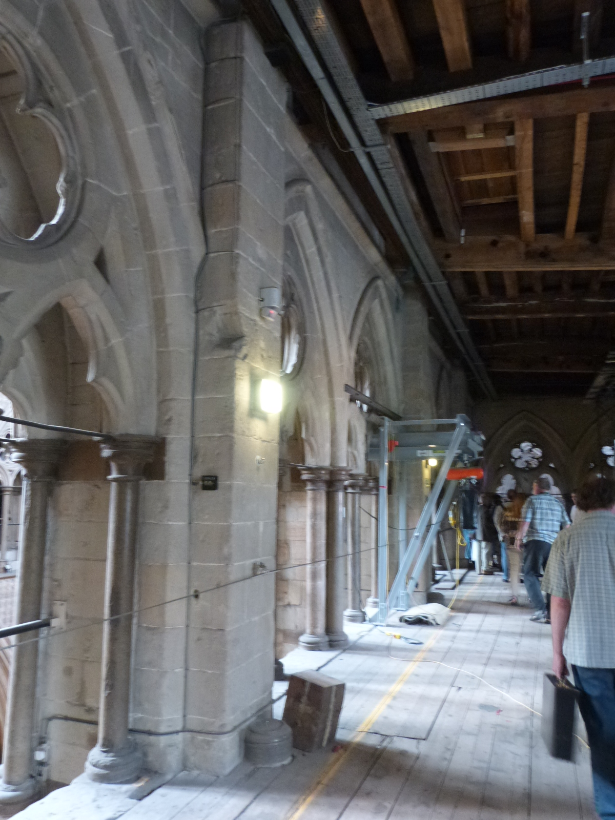 The answer is in the second storey, which is key to so many of the building’s aesthetic drawbacks. Despite what the Abbey keep calling their new exhibition space, the second storey is a gallery NOT a triforium. A triforium is a second storey that is essentially nothing more than a wall with a passage in its thickness. You can’t really walk down it, unless you have a harness and hard hat. A gallery is much safer: I’ve been in the gallery in Westminster, as well as many English Romanesque Cathedrals. You can too, if you go to Stained Glass Museum at Ely, which is the gallery over the cathedral’s south nave aisle.
