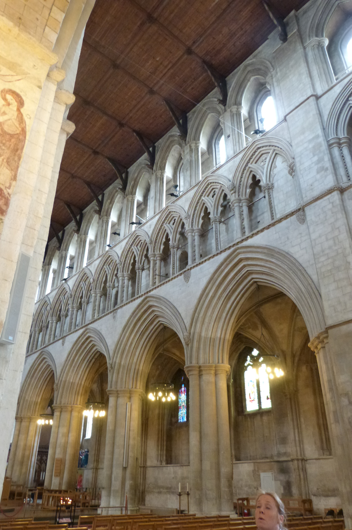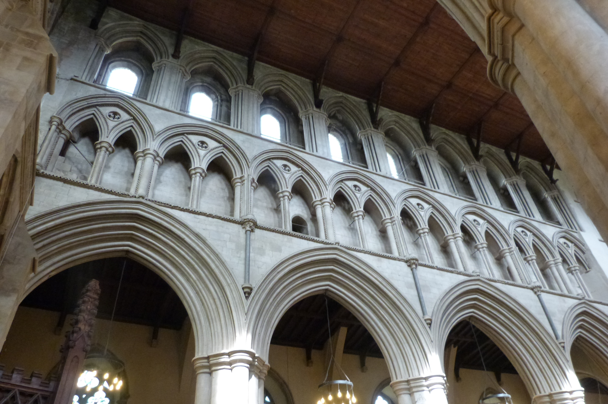 The story of St Albans starts, as with basically all wonky arches, with the Normans. Despite not being a cathedral until 1877, it was one of the most important abbeys in England at the time of the Conquest and was rebuilt in the Romanesque style pretty sharpish: before some of the cathedrals. In fact, it’s one of the earliest bits of Romanesque architecture we have left in England, much of it not being replaced by Gothic rebuilds. It never suffered a central tower collapse, nor was any of it, quite surprisingly, demolished to make it more manageable as a parish church. Instead, it comes off a church that was rather parsimonious with its fabric, seemingly always waiting till the last minute to get the builders in, with disastrous results.